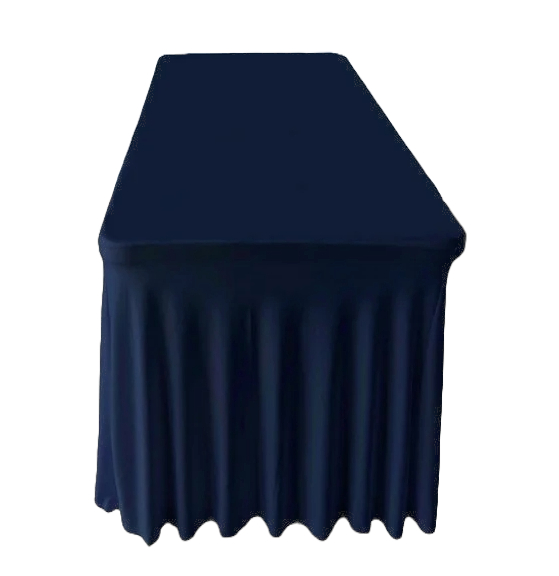 Navy Blue 8 Foot Rectangular Wavy Spandex Fitted Table Skirt by Valentina CoverCo